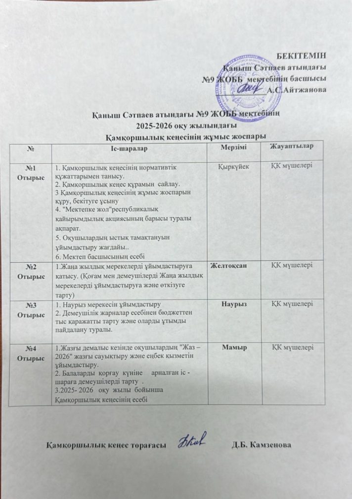 Қамқоршылық кеңестің жұмыс жоспары 2025-2026ж