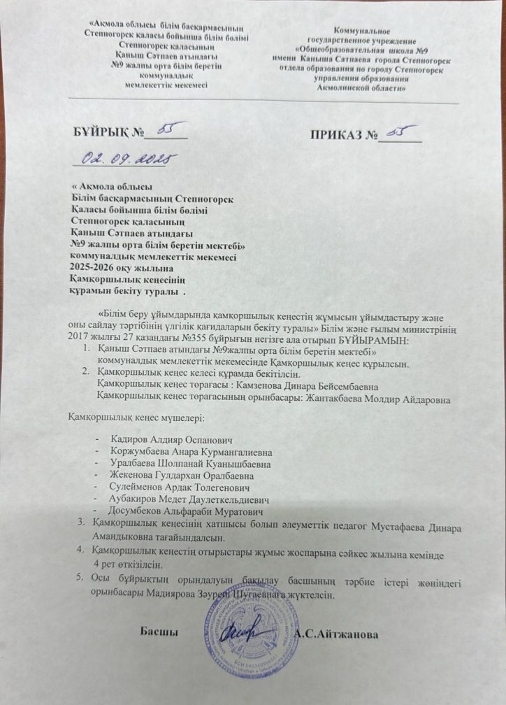 Коммунальное государственное учреждение  «Общеобразовательная  школа №9 имени  Каныша Сатпаева города Степногорск отдела образования по городу Степногорск управления образования  Акмолинской области»