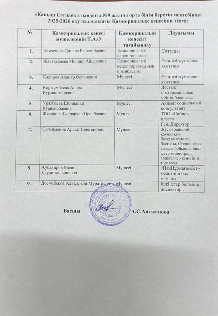 Қамқоршылық кеңесінің тізімі 2025-2026ж